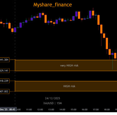 This XAUUSD 15-minute chart illustrates how gold behaves when price enters high-risk and very high-risk zones, where volatility expands and emotional trading often increases.