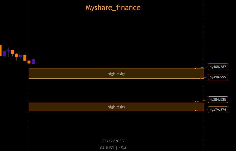 Gold (XAUUSD) is currently moving within clearly defined high-risk price zones on the 15-minute timeframe. These areas represent levels where price reactions become faster, volatility increases, and emotional trading decisions often lead to mistakes.