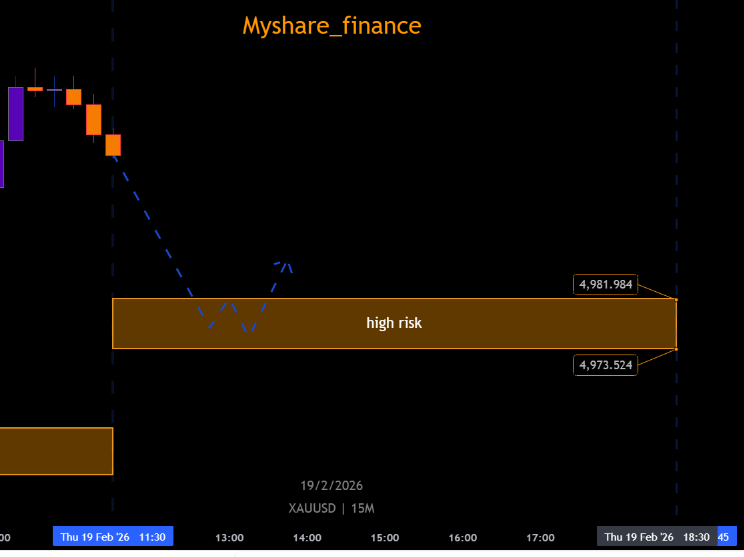 On the 15-minute timeframe, XAUUSD is approaching a clearly marked high-risk supply zone between 4,973 – 4,981. This area represents a short-term institutional reaction zone where liquidity is likely concentrated.