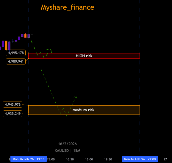 Short-term XAUUSD technical analysis highlighting high-risk and medium-risk liquidity zones. Gold price reaction levels, structure weakness, and potential volatility expansion explained for active traders.