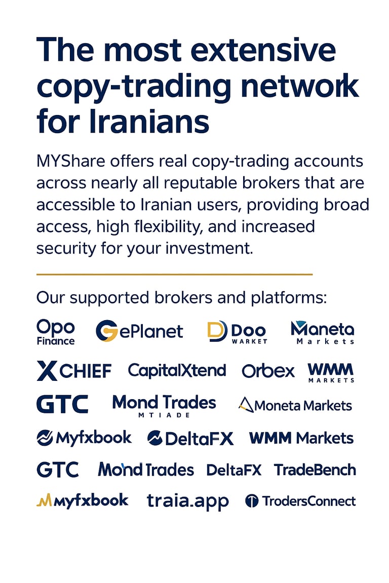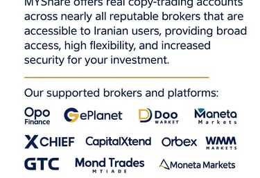 MYShare operates active copy-trading accounts across major international brokers — including Opo Finance, E-Planet, Do Market, Moneta Markets, XChef, CapitalXtend, Orbex Forex, WMM Markets, and GTC — plus dedicated positions on leading copy-trading and analytics platforms such as MyFXBook, Traia.app, SignalStart, TradeBench, and TraderOven. This broad infrastructure ensures maximum accessibility, flexibility, and long-term reliability for every user.