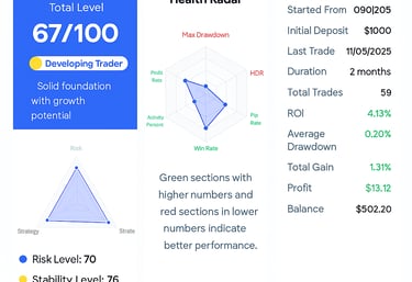 Every trade includes built-in risk management, designed for steady long-term results.Automated trading powered by real, tested strategies — no stress, no effort.